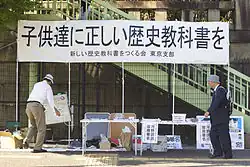 Im Jahr 2000 veröffentlichte die Gesellschaft zur Erstellung neuer Geschichtsbücher das Neue Geschichtsbuch (新しい歴史教科書, atarashii rekishi kyokasho) das eine revisionistische Sicht Japans darstellte. Das Lehrbuch wurde 2001 vom Bildungsministerium genehmigt und löste große Debatten sowohl in Japan wie auch in China und Südkorea aus. Eine große Zahl japanischer Historiker und Lehrer protestierte gegen den Inhalt des Neuen Geschichtsbuchs und seine Behandlung japanischer Handlungen im Krieg. Radio China International berichtete, dass die Regierung der Volksrepublik China „sehr empört und enttäuscht über das von rechten japanischen Gelehrten erstellte neue japanische Geschichtsbuch für das Jahr 2002“ sei. Das Neue Geschichtsbuch wurde auch in den anti-japanischen Demonstrationen von 2005 in China und Südkorea angeprangert, weil es die japanische Aggression während des Zweiten Japanisch-Chinesischen Kriegs mit China und die Kolonisation Koreas beschönigen soll.[7]