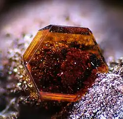 Jarosit (auch Gelbeisenerz[7] oder Raimondit[8]) ist ein häufig vorkommendes Mineral aus der Mineralklasse der „Sulfate“ (und Verwandte, siehe Klassifikation). Es kristallisiert im trigonalen Kristallsystem mit der Zusammensetzung KFe33+[(OH)6|(SO4)2][3], ist also chemisch gesehen ein Kalium-Eisen-Sulfat mit zusätzlichen Hydroxidionen.