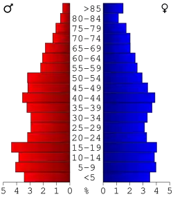 27,9 Prozent der Bevölkerung war unter 18 Jahre alt, 9,6 Prozent zwischen 18 und 24, 26,7 Prozent zwischen 25 und 44, 21,9 Prozent zwischen 45 und 64 Jahre alt und 13,9 Prozent waren 65 Jahre oder älter. Das Durchschnittsalter betrug 35 Jahre. Auf 100 weibliche kamen statistisch 91,0 männliche Personen und auf 100 Frauen im Alter von 18 Jahren oder darüber kamen 87,3 Männer.