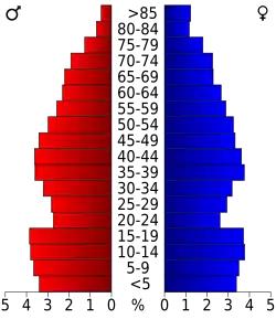 26,5 Prozent der Bevölkerung war unter 18 Jahre alt, 8,0 Prozent zwischen 18 und 24, 26,8 Prozent zwischen 25 und 44, 23,4 Prozent zwischen 45 und 64 und 15,3 Prozent waren 65 Jahre alt oder älter. Das Medianalter betrug 37 Jahre. Auf 100 weibliche Personen kamen 94,6 männliche Personen und auf 100 Frauen im Alter von 18 Jahren oder darüber kamen 92,1 Männer.