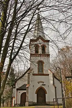 - Die römisch-katholische Laurentiuskirche (poln. Kościół św. Wawrzyńca) wurde 1353 erstmals erwähnt. Der heutige steinerne Bau stammt aus dem Jahr 1826.[9] Der Kirchenbau steht seit 1966 unter Denkmalschutz.[10]