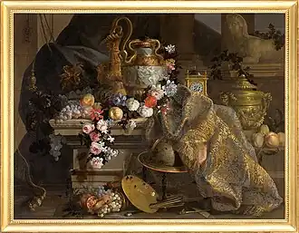 - ↑ „Principal spécialiste en son temps de la peinture de fleurs“. In: Jean-Baptiste Monnoyer, in: Larousse Dictionnaire de la peinture, (Abruf am 28. Juli 2022); „der eigentliche französ. Blumenmaler des 17. Jahrh." (K. Woermann)“, Monnoyer, Jean-Bapt. In: Hans Vollmer (Hrsg.): Allgemeines Lexikon der Bildenden Künstler von der Antike bis zur Gegenwart. Begründet von Ulrich Thieme und Felix Becker. Band 25: Moehring–Olivié. E. A. Seemann, Leipzig 1931, S. 71 (biblos.pk.edu.pl).