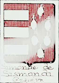 Sismondi entstammte einer alten italienischen Adelsfamilie, die im Jahre 1524 aus Pisa nach Frankreich eingewandert war und in der Dauphiné lebte.[2] Nach dem Edikt von Fontainebleau 1685 wanderte die Hugenotten-Familie Symond nach Genf ein, wo sie die Schreibweise später in Simonde änderte. Sismondi selbst fügte dem Familiennamen um 1796/97, während des Exils in der Toskana, den Prädikatsnamen (de) Sismondi an, da er überzeugt war, dass seine Familie ursprünglich von dem sehr alten[3] pisanischen Patriziergeschlecht Sismondi[4] abstamme.[5]