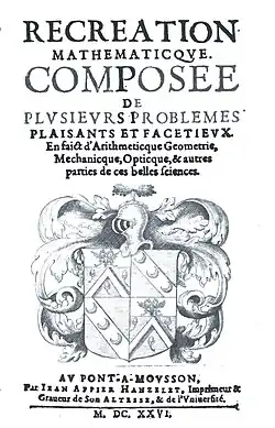 - Recreation mathematicque; composee de plusieurs problemes plaisants et facetieux; en faict d’arithmeticque geometrie, mechanicque, opticque, et autres parties de ces belles sciences, Pont-à-Mousson: Jean Appier Hanzelet, 1624