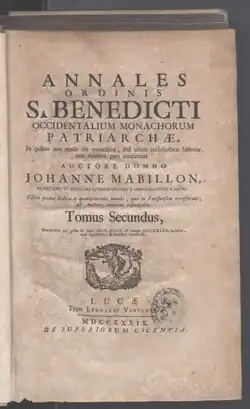 1701 wurde Mabillon zu einem der Gründungsmitglieder der Académie des inscriptions et belles-lettres ernannt. Von 1703 bis 1707 veröffentlichte er die ersten vier Bände der Annales ordinis Sancti Benedicti 480–1157 (Bd. 5 postum 1713, Bd. 6 von anderen Autoren 1739). 1704 erschien die zweite Auflage der De re diplomatica mit einem Ergänzungsband.