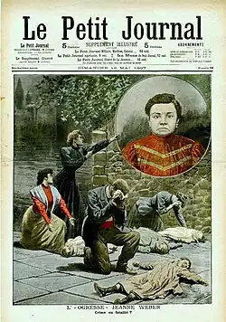 - ↑ Die gesichteten Quellen nennen die Vornamen der Mütter der ermordeten Kinder nicht, es ist jeweils nur von Madame Pierre Weber, Madame Charles Weber usw. die Rede.