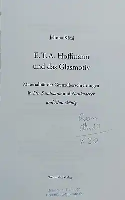 - E.T.A. Hoffmann und das Glasmotiv. Materialität der Grenzübeschreitungen in Der Sandmann und Nussknacker und Mausekönig. Wehrhahn-Verlag, Hannover 2020, ISBN 978-3-86525-786-4.