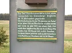 Anfang des 19. Jahrhunderts war der Bergbau fast erloschen. 1805 arbeiteten in den Zinnzechen nur noch fünf Bergleute. Von 1835 bis 1879 ist der Abbau kurzzeitig wieder aufgenommen worden. Infolge der geringen Erträge und des niedrigen Zinnpreises wurden immer mehr Zechen aufgegeben.[8] 1864 verunglückte der Schichtmeister Franz Ullmann in der Hirschkopfzeche nahe Hirschenstand. Da Nachforschungen nach seiner Leiche ergebnislos ausfielen, ging im Volksmund die Erzählung um, dass Ullmann beim Absteigen in den Schacht die Sprossen der Leiter über sich abgesägt haben soll, um nicht mehr an das Tageslicht zu gelangen. Er habe den Niedergang des Bergbaues nicht überwinden können.[9]