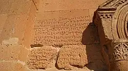Einen Hinweis auf die Funktion der Kirche liefert eine Inschrift am östlichen Pilaster der Nordwand: „Ich, der Priester Jakob, kam aus Kagaku-daşt durch Christus an diesen Ort in das Martyrium des Hl. Prodromos für die Fürbitte für die wahren Gläubigen; dieses Martyrium erneuerte ich im Namen des Prodromos und Erstmärtyrers.“ Der aus acht Zeilen bestehende Text wird in das 10. Jahrhundert datiert.[32] Laut Priester Jakob war die Kirche Johannes Prodromos, (griechisch „Johannes der Vorläufer“, Johannes der Täufer als Wegbereiter Christi) gewidmet. Die Kirche lag in vorarabischer Zeit im Einflussbereich der mächtigen armenischen Kamsarakan-Fürsten, die Nachkommen der armenischen Arsakiden waren.[33] Sie könnte ein abgelegenes Pilgerzentrum gewesen sein. Hierfür sprechen die architektonisch hervorgehobene West- und Südseite, die bei syrischen Pilgerkirchen üblich war, bislang nicht freigelegte Mauerreste der Umgebung, die als Mausoleum interpretiert werden, und die Anlage des Wasserbeckens.[34]