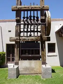 Pochwerk mit 5 Stempel im Außenbereich des Douglas Memorial Mining Museum im Jerome State Historic Park