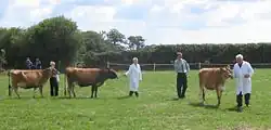 Das Jersey-Rind ist eine Rasse des Hausrindes. Sie stammt ursprünglich von der Kanalinsel Jersey und wurde dort über Jahrhunderte ohne Beeinflussung durch andere Rassen gezüchtet. Sie gilt als eine der ältesten Rinderrassen der Welt.[1] Die Rinderrasse wird wegen ihrer hohen Milchleistung, ihrer Robustheit und ihres sanftmütigen Temperaments weltweit geschätzt.