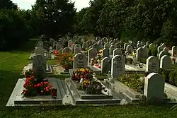 Auf verschiedenen deutschen Kommunalfriedhöfen gibt es mittlerweile spezielle Gräberfelder für verstorbene Jesiden. 1990 wurde auf dem Neuen Friedhof in Wesel das erste jesidische Gräberfeld errichtet. Obwohl in Celle die meisten Jesiden leben, haben sie dort kein eigenes Gräberfeld. Das größte Feld mit rund 200 Gräbern liegt in Hannover-Lahe.[36] Weitere jesidische Gräberfelder befinden sich auf: