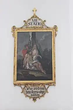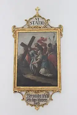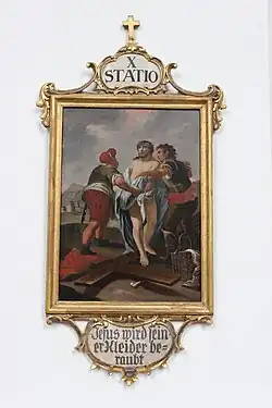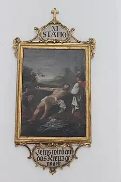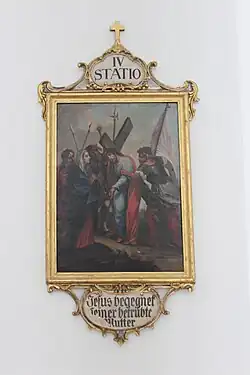 In den Seitenschiffen befindet sich ein Kreuzweg mit 14 Stationen, der mit der Verurteilung Jesu durch Pontius Pilatus beginnt und mit der Grablegung Jesu endet.