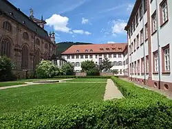 - ↑ Zur Vorgängerbebauung des späteren Jesuitenquartiers Matthias Klefenz, Achim Wendt: Tabula rasa im „Jesuitengarten“ – Stadtkernarchäologie in Heidelberg. In: Archäologische Ausgrabungen in Baden-Württemberg 2016. WBG Theiss, Darmstadt 2017, ISBN 978-3-8062-3601-9.