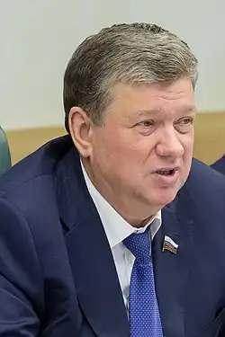 Buschmin war Stellvertretender Vorsitzender des Föderationsrates in der Russischen Föderation.[3] Im März 2014 wurde Buschmin von der EU mit einem Einreiseverbot und einer Vermögenssperre sanktioniert.