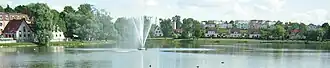Durch Kanäle ist er mit einigen kleineren Seen verbunden. Er nimmt Wasser aus dem Ewingsee im Norden auf und hat einen Abfluss über die Iławka (Eylenz) in die Drwęca (Drewenz) im Süden.[1]