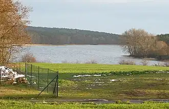 Der See liegt im Wielkopolski-Nationalpark. Entlang des östlichen Ufers, das bewaldet ist, führt ein Wanderweg. Am nördlichen Ufer liegt das Dorf Łódź.