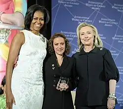 - ↑ Indira A.R. Lakshmanan: Michelle Obama, Hillary Clinton Honor 'Women of Courage' In: Bloomberg, 8. März 2012. Abgerufen am 27. Januar 2024 (englisch).