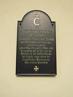 In Neustrelitz erinnert eine am 19. Oktober 1924 enthüllte Plakette an seinem Wohnhaus in der Glambecker Nebenstraße an Timm.