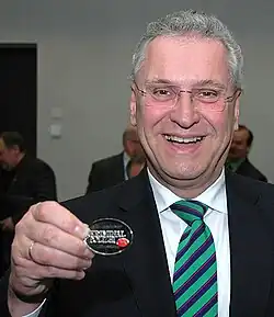 Joachim Herrmann (* 21. September 1956 in München) ist ein deutscher Politiker der CSU. Herrmann ist seit dem 16. Oktober 2007 Bayerischer Staatsminister des Innern, seit März 2018 hat er zusätzlich die Zuständigkeit für den Bereich Integration[1] und seit November 2018 auch für den Bereich Sport. Er ist seit Oktober 1994 Mitglied des Bayerischen Landtags.[2]