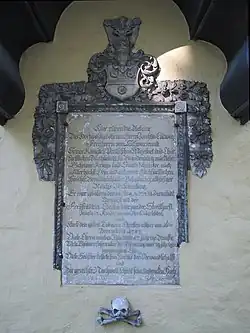 - ↑ Bettina Ulrike Schwick: Dieser Stein / Soll der Nachwelt Zeuge seyn Untersuchungen zu barockzeitlichen Epitaphien der Reichsstadt Regensburg. In: Museen und Archiv der Stadt Regensburg (Hrsg.): Regensburger Studien und Quellen zur Kulturgeschichte. Band 20. Universitätsverlag Regensburg, Regensburg 2012, ISBN 978-3-86845-077-4, S. 48.