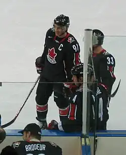 Seinen ersten Einsatz bei Olympischen Winterspielen hatte Joe Sakic 1998 im japanischen Nagano, ein Medaillenrang wurde jedoch verfehlt. Bei den Spielen von 2002 in Salt Lake City spielte Sakic in einer Angriffsreihe mit Mario Lemieux und Paul Kariya[24] und erzielte bei diesem Turnier in sechs Spielen sieben Scorerpunkte. Damit war der Linksschütze erfolgreichster kanadischer Scorer. Der Angreifer führte die Kanadier zu ihrer ersten olympischen Goldmedaille seit 50 Jahren. Im Finalspiel des Wettbewerbs gegen die US-amerikanische Mannschaft erzielte der Center zwei Tore. Im Anschluss an die Partie wurde Sakic zum wertvollsten Spieler des Turniers gewählt und in den Triple Gold Club aufgenommen.[25] Bei den Winterspielen 2006 lief Sakic für die kanadische Mannschaft als Kapitän auf, das Team verfehlte jedoch die Medaillenränge und belegte den siebten Platz.[26]