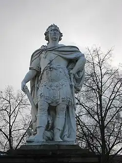 - Kassel: Rossebändiger der Rennbahn, 1770, sowie Statue des Landgrafen Friedrichs II. von Hessen-Kassel, begonnen 1771, von seinem Sohn nach 1781 vollendet. Für das von François de Cuvilliés entworfene Schlosses Wilhelmsthal bei Kassel schuf Johann August Nahl der Ältere die kostbaren Wandvertäfelungen und viele Stuckaturen.[2]