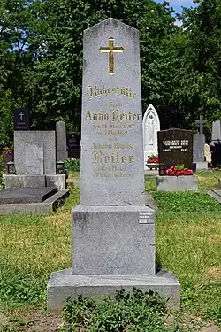 Er starb ein Jahr später als seine zweite Gattin und wurde in einem ehrenhalber gewidmeten Grab auf dem Wiener Zentralfriedhof (Gruppe 41 D, Reihe 11, Nr. 5) begraben. Sein Geburtshaus in Urfahr (Im Tal 12) wurde 2007 abgerissen, das Reiter-Haus an der Oberen Donaulände in Linz musste bereits 1962 dem Römerberg-Tunnel weichen,[5] Das Sterbehaus in Wien, Rechte Wienzeile 15 ist hingegen unverändert erhalten, trägt aber keine Gedenktafel.[6]