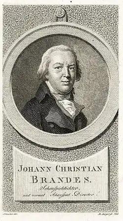 Johann Christian Brandes (* 15. November 1735 in Stettin; † 10. November 1799 in Berlin) war ein deutscher Schauspieler und dramatischer Dichter.