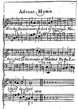 Anfang von Nun komm, der Heiden Heiland in der ersten Ausgabe der Psalmodia Germanica