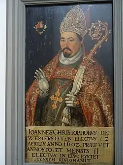 Johann Christoph von Westerstetten erwies sich bereits in seiner Ellwanger Zeit als systematischer Hexenverfolger und machte so Karriere.[1][2] Zum Ende seiner Amtszeit in Ellwangen fanden 1611 und 1612 dort ca. 260 Hinrichtungen wegen Hexerei statt.[3] Als Bischof von Eichstätt berief Johann Christoph von Westerstetten Jesuiten und Kapuziner in das Bistum und betrieb die Hexenverfolgung im Hochstift Eichstätt in wesentlich stärkerem Ausmaß als seine Vorgänger. Schon bei seinen Zeitgenossen galt er als einer der berüchtigten fränkischen Hexenbischöfe. Während seiner Amtszeit sind von 1613 bis 1630 im Hochstift Eichstätt mindestens 199 Hexenprozesse und 176 Hinrichtungen von 150 Frauen und 26 Männern wegen Hexerei nachweisbar.
