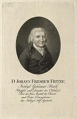 1787 wurde Johann Friedrich Fritze durch den König Friedrich Wilhelm II. zum Geheimrat ernannt.