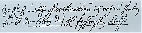 In einem Brief vom 17. März 1718 stellte er fest, dass er ... die Specifikation zu dem Contract sambt der Cobey des H. Fischerschen abriss ... noch in Händen habe.