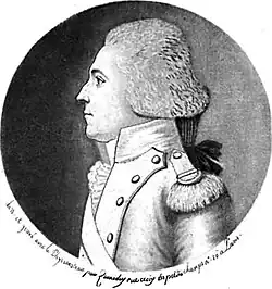Die Welt der Aufklärung lernte der Gardeleutnant beim Zürcher Kaufmann Johann Caspar Schweizer (1754–1814) kennen, der mit Bansi befreundet war und dessen älteste Tochter Barbara adoptiert hatte.[17] Schweizer übersiedelte 1786 nach Paris, wurde dort mit Mirabeau bekannt und trat später dem Jakobinerklub bei.[18] Salis wurde damals in die Pariser FreimaurerlogeLa Bienfaisance aufgenommen.