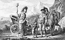 Matthisson berichtete dem Freund 1794: «Deine Muse hat in Deutschland eben so viele Freunde, als darin gebildete und gefühlvolle Menschen wohnen […].» Unter anderen hätten ihn Klopstock, Wieland und Voss grüssen lassen oder sich nach ihm erkundigt. Salis lebte damals in Chur ohne öffentliches Amt. Dort besuchten ihn 1795 die dänische Dichterin Friederike Brun (1765–1835) mit ihren Kindern und danach Matthisson.[85] Der «nordischen Sappho» (Matthisson), die sich von der Französischen Revolution «Feenwunder» versprochen hatte,[86] war Salis 1791 in Paris begegnet. In einem Brief an Bansi nannte sie das Ehepaar Salis «zwei hohe reine Gestalten aus dem Paradies»[87] und schloss mit Ursina, die ihr erstes Kind stillte, Seelenfreundschaft.[88] Matthisson, der sich anschickte, mit Fürstin Luise von Anhalt-Dessau nach Italien zu reisen, schrieb: «Mein Eintritt in die friedliche Wohnung des treuen Salis war der Eintritt in ein hehres Heiligthum, wo Freundschaft, Liebe, Tugend, Weisheit, Natursinn, Geistesadel und Selbstgefühl in reiner und unwandelbarer Harmonie beisammen wohnen.»[89]