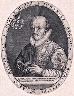 - ↑ Richard Charteris: Johann Georg von Werdenstein (1542-1608): A Major Collector of Early Music Prints, S. 4, Harmonie Park Press, 2006, ISBN 0-89990-134-4; (Ausschnittscan zu den Geburtsdaten)