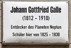 Johann Gottfried Galle (* 9. Juni 1812 in Radis; † 10. Juli 1910 in Potsdam) war ein deutscher Astronom, Klimatologe und Hochschullehrer. Er entdeckte in Zusammenarbeit mit Urbain Le Verrier den Planeten Neptun.