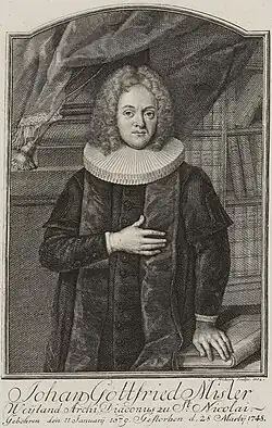 - Hans Schröder: Misler (Johann Gottfried I.). In: Lexikon der hamburgischen Schriftsteller bis zur Gegenwart. Band 5, Nr. 2608. Perthes-Besser & Mauke, Hamburg 1870 (Faksimile auf den Seiten der Staats- und Universitätsbibliothek Hamburg – In dem Artikel über seinen gleichnamigen Sohn erwähnt).