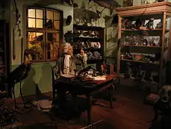 Wachsfigur von Johann Hermann inmitten seines naturwissenschaftlichen Kabinetts im Zoologischen Museum der Stadt Straßburg