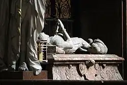 Seine sterblichen Überreste wurden anschließend nach Wien gebracht und in der Familiengruft in der Michaelerkirche beigesetzt. Seine Söhne ließen für ihn dort, in der Mitte des Presbyteriums, ein kostbares Marmorgrab errichten, auf dem der Verstorbene in einer Ritterrüstung auf einer Tumba liegt, die auf Löwenköpfen ruht.[8] Dieses Grabmal wurde 1670 unter eine Arkade links vom Hochaltar versetzt. Das Grabmal wird Alexander Colin zugeschrieben, der in Innsbruck und im Dom zu Prag für die Habsburger Grabmäler schuf.[9]