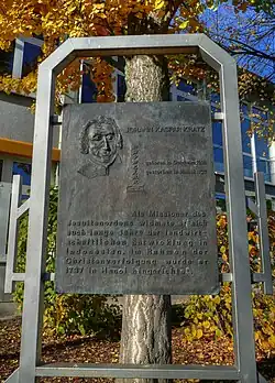 Gedenktafel für Johann Kaspar Kratz an der katholischen Grundschule Golzheim