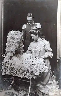 - ↑ Aus Stadt und Land. Coburg, den 19. September. Zur Taufe des Erbprinzen: Die Ankunft S. M. des Kaisers und I. M. die Kaiserin darf als der erste Akt unter den Festlichkeiten zur Taufe des Erbprinzen bezeichnet werden. in: Coburger Zeitung. Illustriertes Sonntagsblatt, Red. Emil Bretschneider, Jg. 47, Ausgabe Nr. 220 vom 20. September 1906, Druck und Verlag Rob. Dornheim, Coburg 1906, S. 1 f.