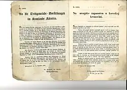 - ↑ veröffentlicht in: Bojan-Ilija Schnabl: 1824 in 1849, ključni letnici za razumevanje slovenske politične in ustavne zgodovine na Koroškem. In: Koroški koledar 2014, Celovec 2013, S. 177-189, Tafel S. 187