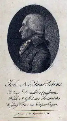 Johann Nicolaus Tetens, auch Johannes Nikolaus Tetens, dänisch: Johan Nicolai Tetens (* 16. September 1736 in Tetenbüll[1]; † 15. August 1807 in Kopenhagen) war ein deutsch-dänischer Hochschullehrer, Philosoph, Mathematiker und Naturforscher der Aufklärung.