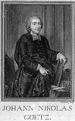 - ↑ J. Franck: Götz, Johann Nicolaus. In: Allgemeine Deutsche Biographie (ADB). Band 10, Duncker & Humblot, Leipzig 1879, S. 252 f.