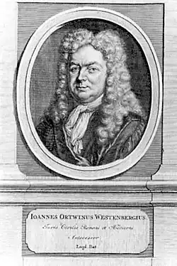 - Westenberg, Johann Ortwin. In: Johann Heinrich Zedler: Grosses vollständiges Universal-Lexicon Aller Wissenschafften und Künste. Band 55, Leipzig 1748, Sp. 842–844.
