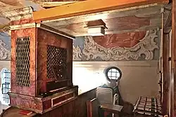 Gehäuse bis auf Schleierbretter erhalten → Orgel | ||