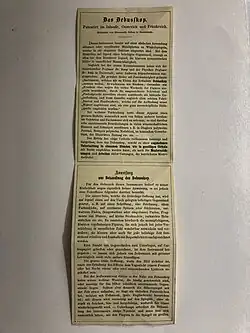 Aus dem Bestand des Museum Bensheim. "Das Debusskop. Patentiert, Oestreich und Frankreich (sic.)", Museum Bensheim. Enthält das Zitat von Prof. Dr. Kaup und Prof. Dr. Külp