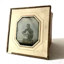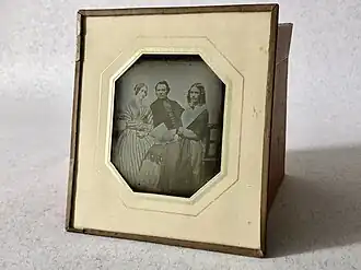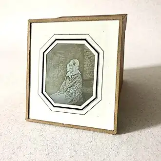 Die Daguerreotypien von Johann Wilhelm Debus stellen eines der größten Konvolute aus der Hand eines Amateurs dar. Es handelt sich um 22 Abbildungen, die er in der Zeit zwischen 1843 und 1852 auf seinem Landsitz in Schönberg herstellte. Debus war ganz besonders an Technik und Physik interessiert, was ihm nicht zuletzt seinen Erfolg als Vermesser bis zum Steuerrat in Darmstadt ebnete. Diese Neugierde ist aber auch dafür verantwortlich, dass er sich in seiner Freizeit in Schönberg des neuen Verfahrens der Fotografie widmete. Vielleicht bekam er den nötigen Hinweis dazu auch von seinem ehemaligen Physiklehrer Leutnant Johann Gottlieb Nörrenberg, der bereits kurz nach der Publikation Daguerres zur Herstellung von Fotografien im Jahr 1839 damit begann, derartige Aufnahmen herzustellen. Die Daguerreotypie verbreitete sich nach der Veröffentlichung des Verfahrens rasant, sodass es Debus nicht schwergefallen sein muss, eine Kamera und die nötigen Utensilien zur Herstellung zu erwerben. Er fotografiert leidenschaftlich und technisch perfekt. Um die besten Ergebnisse zu erzielen, setzt er seine Modelle vor die Hauswand seines Landsitzes in Schönberg. Hier herrschen gute Lichtverhältnisse. Die älteste Daguerreotypie zeigt seine Tante – Friederike Daum, die in der Familie liebevoll „das Malheurchen“ genannt wurde – aus dem Jahr 1843. Hier versucht er noch behelfsmäßig einen Hintergrund aus einem Tuch herzustellen. Nach und nach stattet er die Hintergründe immer besser aus, gibt seinen Modellen Attribut-Gegenstände in die Hand, wie man es in dieser Zeit von der Malerei bereits kennt. Im Vergleich zur biedermeierzeitlichen Darstellung auf Ölgemälden, nehmen die Personen auf Debus‘ Fotografien meist lockere und entspannte Posen ein. Dadurch wirken sie trotz der langen Belichtungszeiten spontan und zufällig. Im Vergleich dazu werden in den Ateliers der Profis die Modelle mit Armen, Körper und Hals an den Stuhl fixiert, so dass sie puppenähnlich steif dasitzen. Außergewöhnlich ist auch, dass Debus keine hierarchischen Grenzen kennt. Er fotografiert Familie, Adelige, Bürger bis hin zu Arbeitern wie der Magd und seinem Gärtner auf die gleiche, liebevolle Weise und stellt damit sein ganz persönliches Umfeld dar. Das macht das Konvolut zu einem einzigartigen Zeugnis in der Geschichte der Fotografie und des Lebens um eine Persönlichkeit, die Debus im 19. Jahrhundert verkörpert.