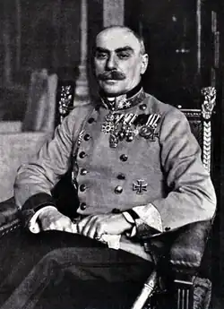 Zu Beginn des Ersten Weltkriegs nahm er mit seiner 8. Division an der und Schlacht von Kraśnik und Lemberg teil, übergab sie aber im September 1914 an Generalmajor Ludwig von Fabini, um General der Infanterie Blasius Schemua im Kommando des II. Armeekorps zu ersetzen. Kurz danach wurde er durch allerhöchste Entschließung mit Rang vom 16. Februar 1915 zum General der Infanterie befördert und focht mit seinem Korps im September 1915 an der Wolhynischen Front,[5] wurde aber alsbald krankgemeldet und mit Wartegebühr beurlaubt, bis er zum 10. Jänner 1916 reaktiviert und zum Stadtkommandanten von Wien ernannt wurde. Dieses Amt bekleidete er bis zum Kriegsende.[8]